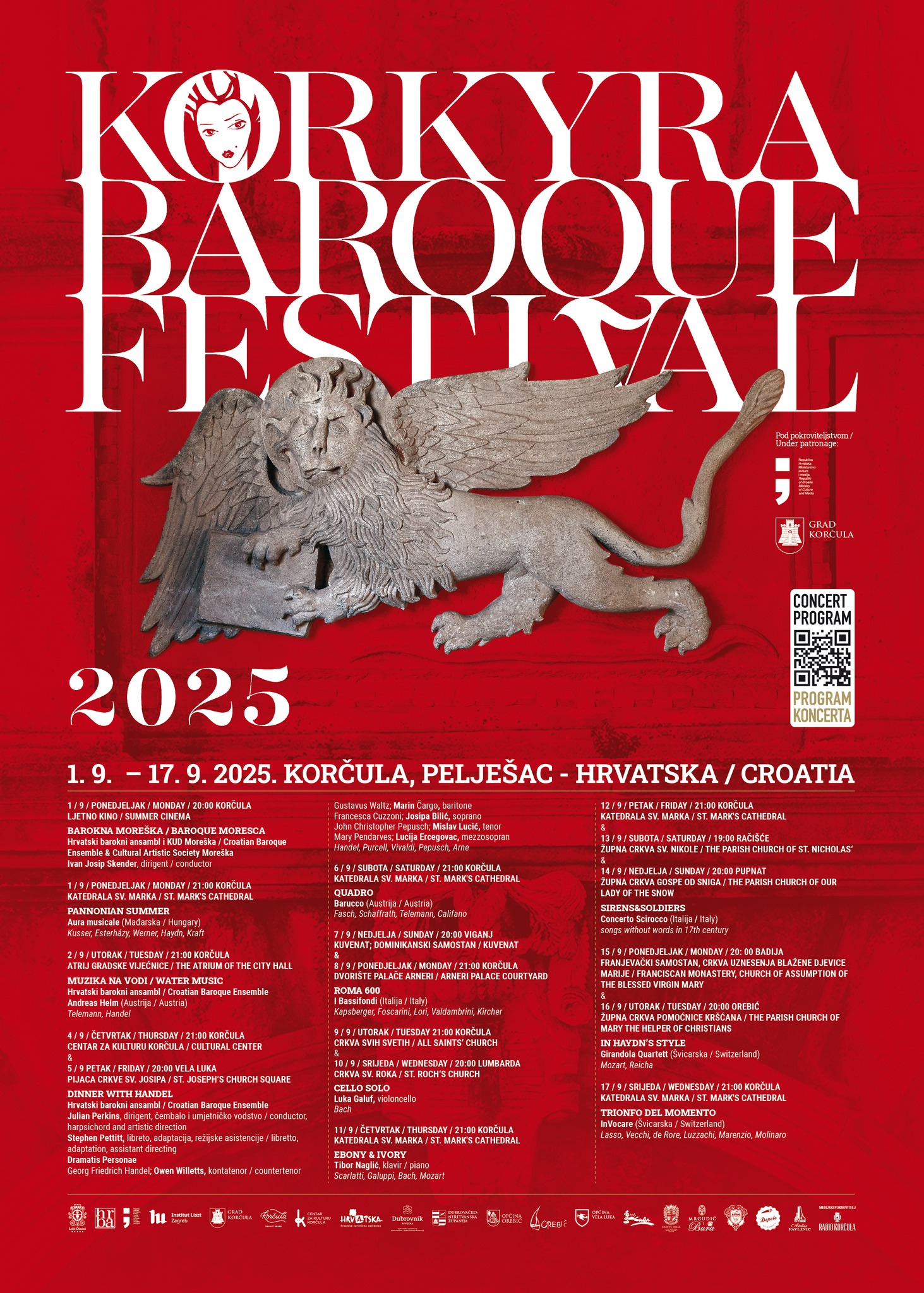 Od 1. do 17. rujna u Gradu Korčuli te Veloj Luci, Račišću, Pupnatu, Lumbardi, Badiji, Vignju i Orebiću moći ćete uživati u brojnim koncertima domaćih i stranih umjetnika, ljubitelja barokne glazbe.