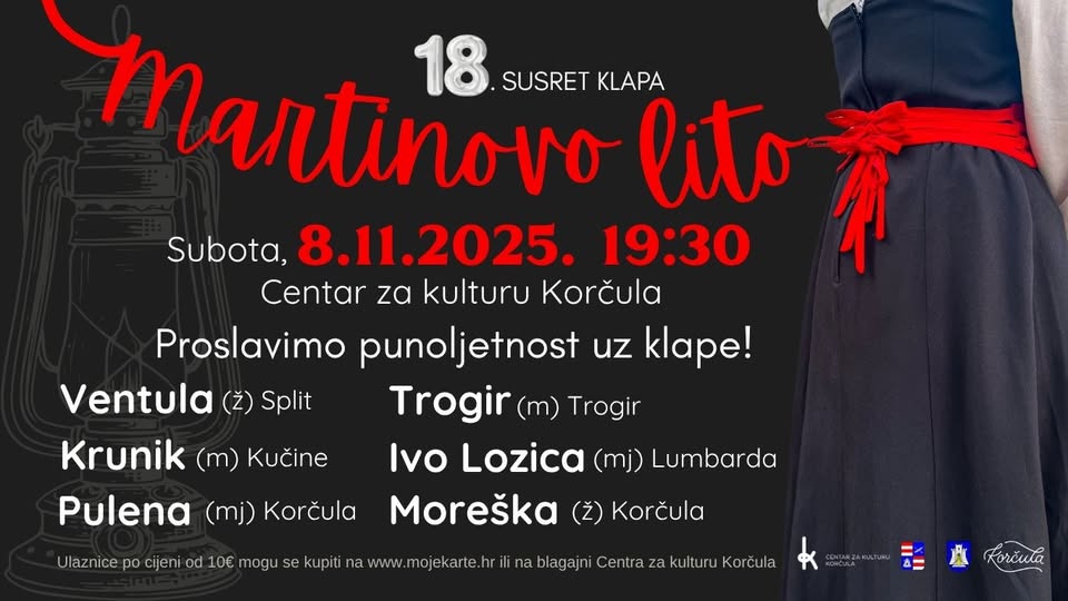 Osigurajte svoje ulaznice na vrijeme i vidimo se na koncertu u subotu, 8.11.2025. u 19:30, u Centru za kulturu Korčula!
