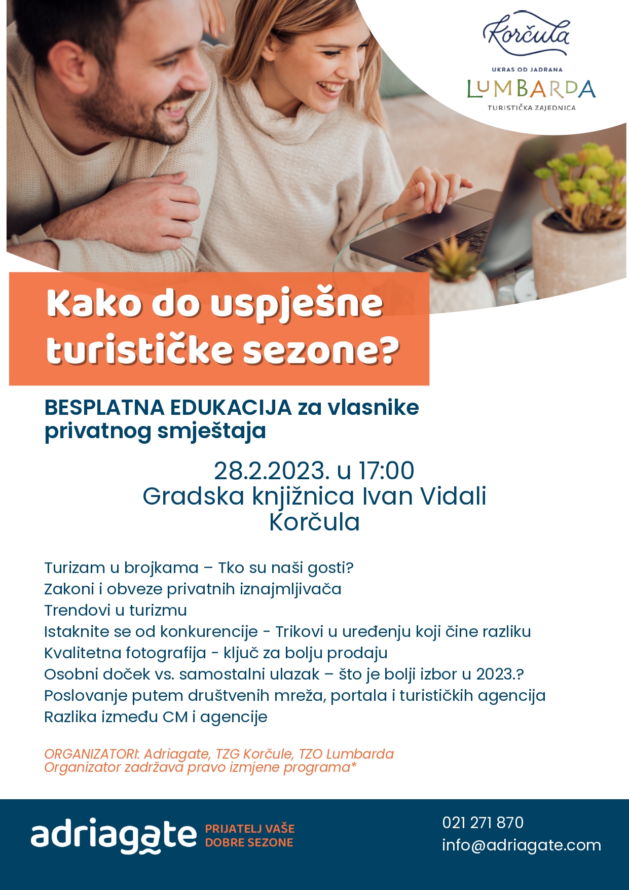 Edukaciju u partnerstvu organiziraju Adriagate, TZG Korčule i TZO Lumbarda.