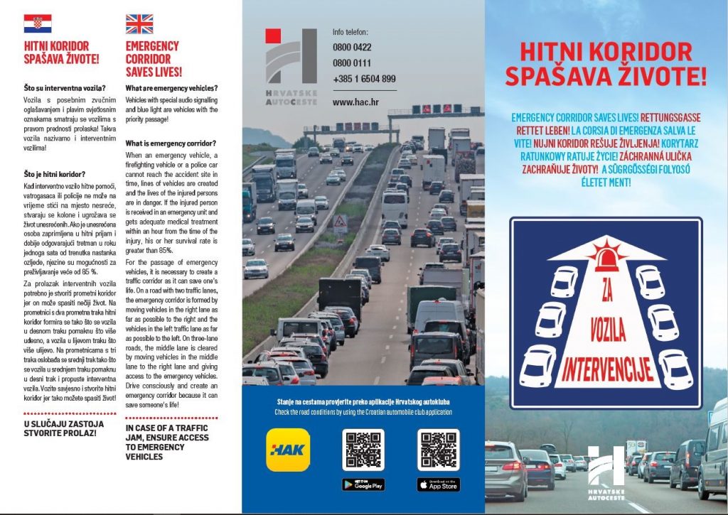 Kad krećemo na odmor, svima nam je zajedničko da želimo što sigurnije stići na cilj. U svrhu što boljeg i sigurnijeg puta tijekom ljetnih mjeseci, ali i tijekom cijele godine, Hrvatski autoklub je sudjelovao u edukativnoj akciji „Hitni koridor spašava život“. Smisao ove akcije bio je osvješćivanje javnosti o važnosti formiranja Hitnog koridora kako bi interventna vozila mogla što prije doći do unesrećenih osoba.