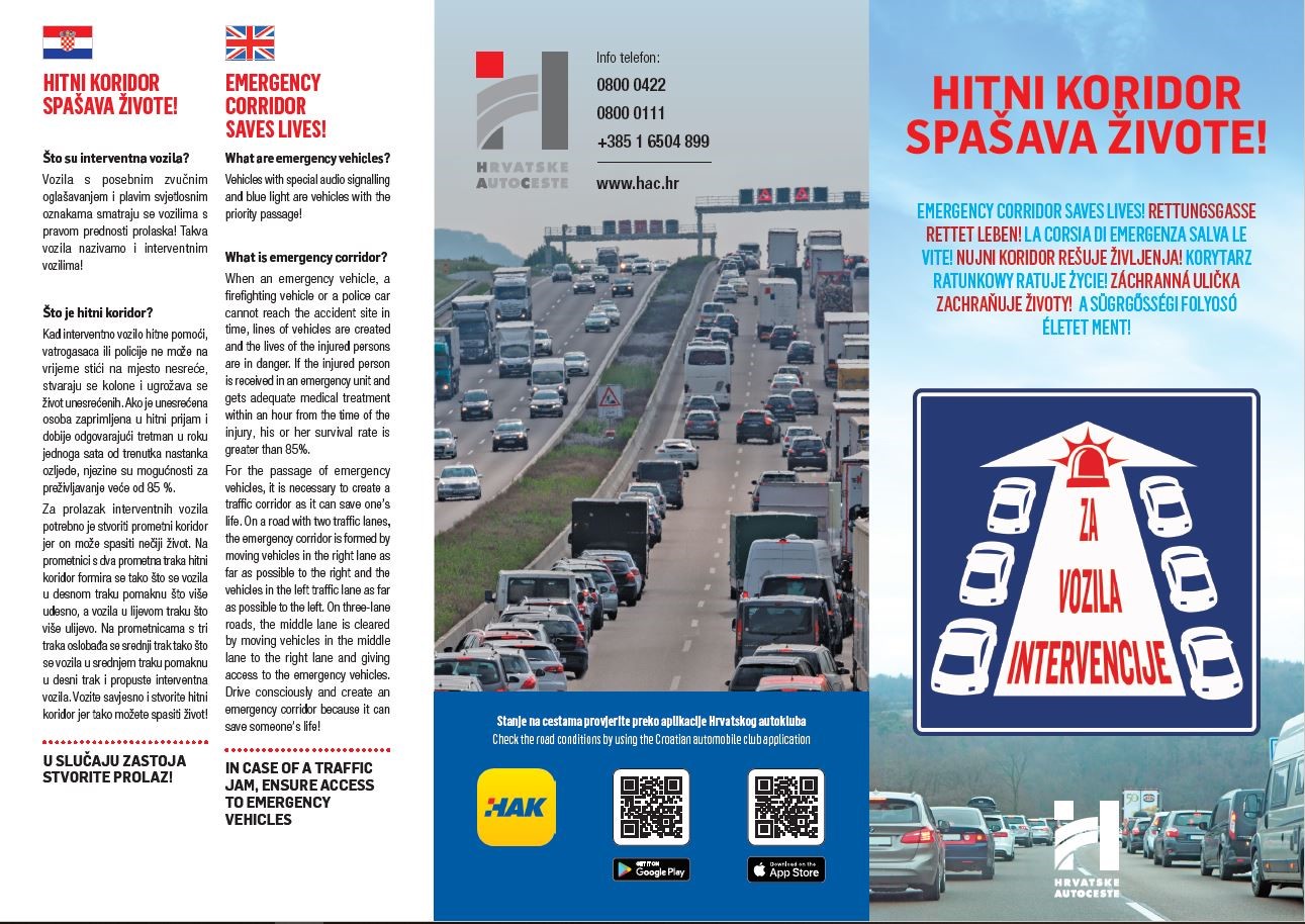 Kad krećemo na odmor, svima nam je zajedničko da želimo što sigurnije stići na cilj. U svrhu što boljeg i sigurnijeg puta tijekom ljetnih mjeseci, ali i tijekom cijele godine, Hrvatski autoklub je sudjelovao u edukativnoj akciji „Hitni koridor spašava život“. Smisao ove akcije bio je osvješćivanje javnosti o važnosti formiranja Hitnog koridora kako bi interventna vozila mogla što prije doći do unesrećenih osoba.