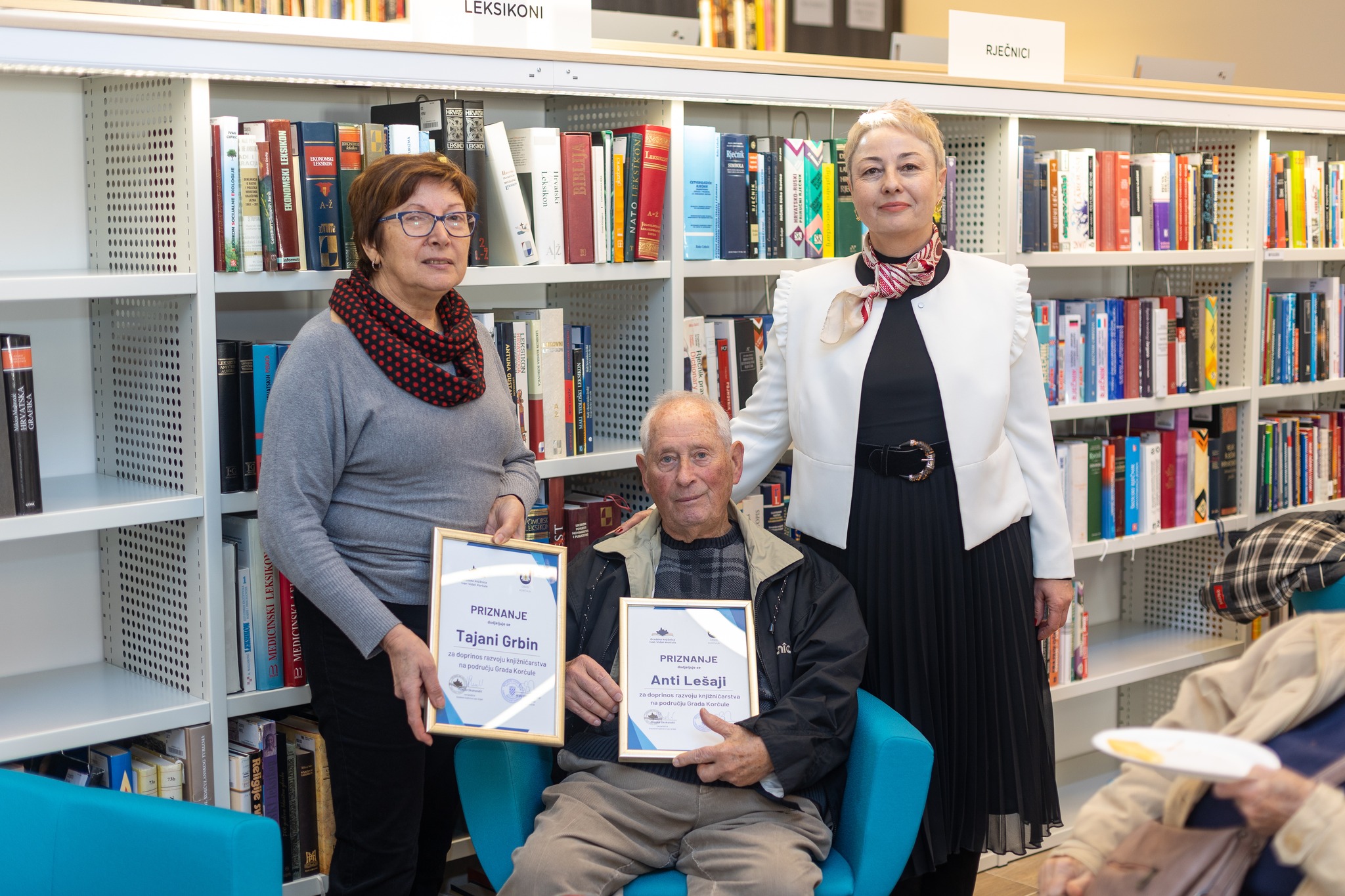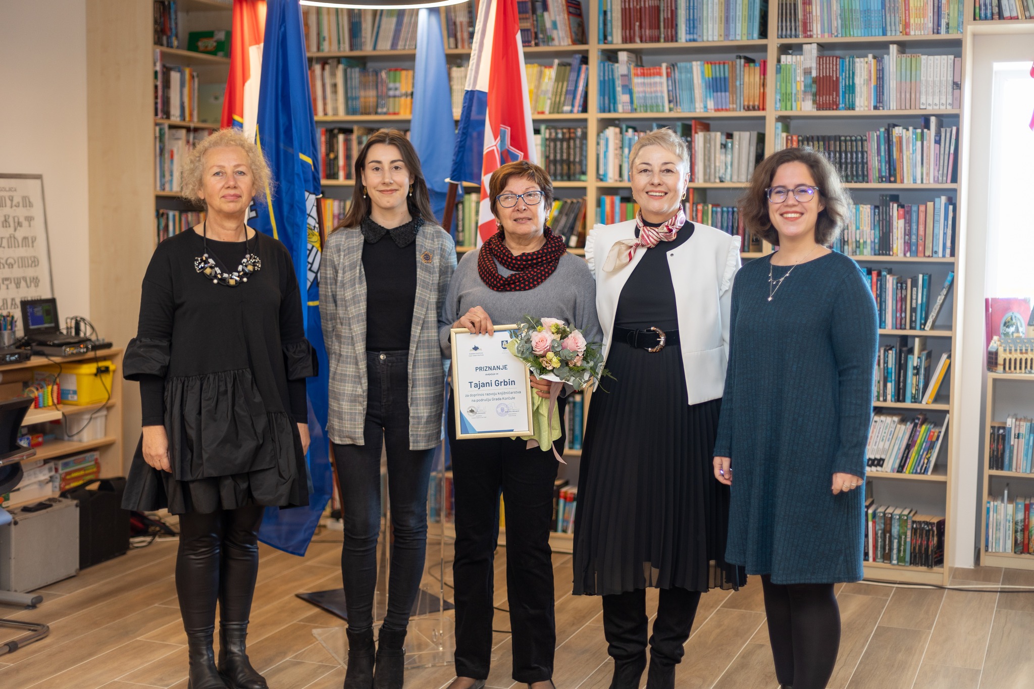 Knjižnicu je, uz obraćanje okupljenima i presijecanjem vrpce, svečano otvorila gradonačelnica Grada Korčule Nika Silić-Maroević, a prigodne govore održali su Milojka Skokandić, ravnateljica, Marica Špro-Ficović voditeljica županijske Matične službe za narodne i školske knjižnice, te Joško Cebalo, zamjenik župana DNŽ i izaslanik ministrice kulture Nine Obuljen Koržinek. Bivšim ravnateljima knjižnice, Anti Lešaji i Tajani Grbin, dodijeljena su priznanja za poseban doprinos razvoju knjižničarstva na području Grada Korčule, a svečanost otvorenja uveličali su nastupi mag. muzike Marije Žanetić na violini, kao i učenika osnovne i glazbene škole u Korčuli. Brojni okupljeni Korčulani razgledali su knjižnicu, koju će odsada s još većim zadovoljstvom posjećivati i rado u njoj boraviti.