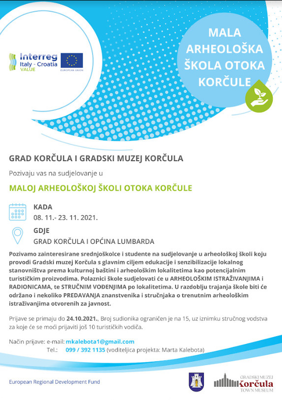 Arheološku školu provodi Gradski muzej Korčula u sklopu projekta Value (Interreg Italija - Hrvatska).