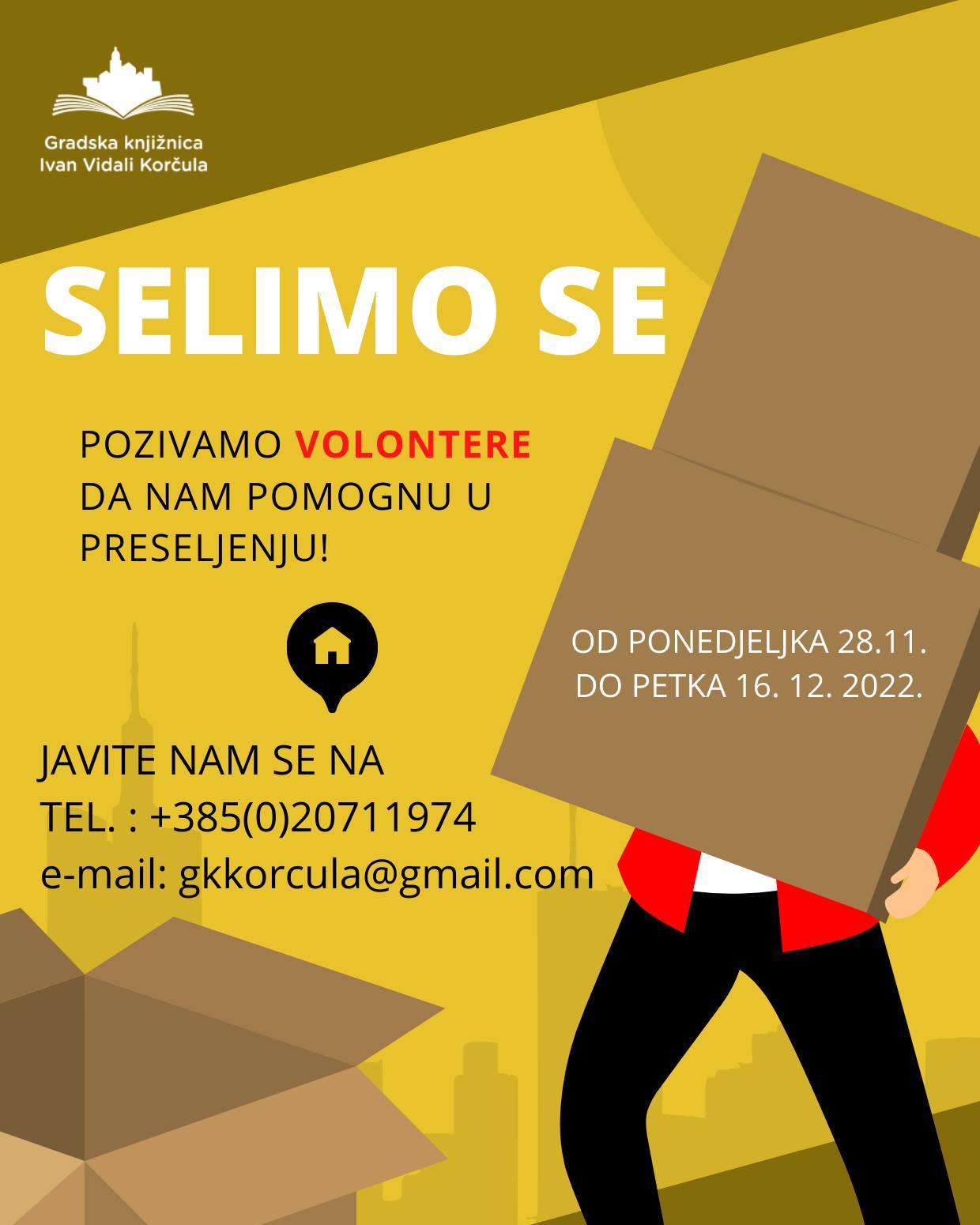 Od danas, 28.11.2022. do petka, 16.12.2022. knjižnica će biti zatvorena zbog preseljenja.