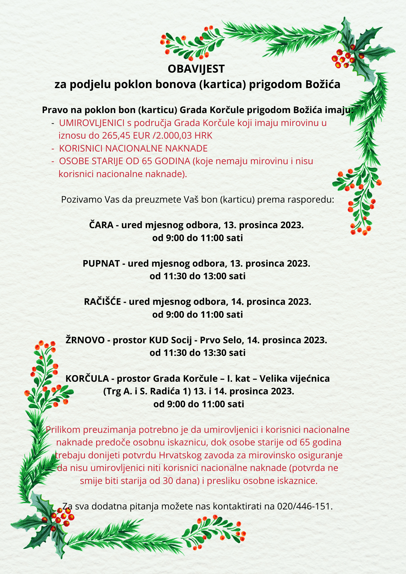 Obavijest za podjelu poklon bonova (kartica) prigodom Božića