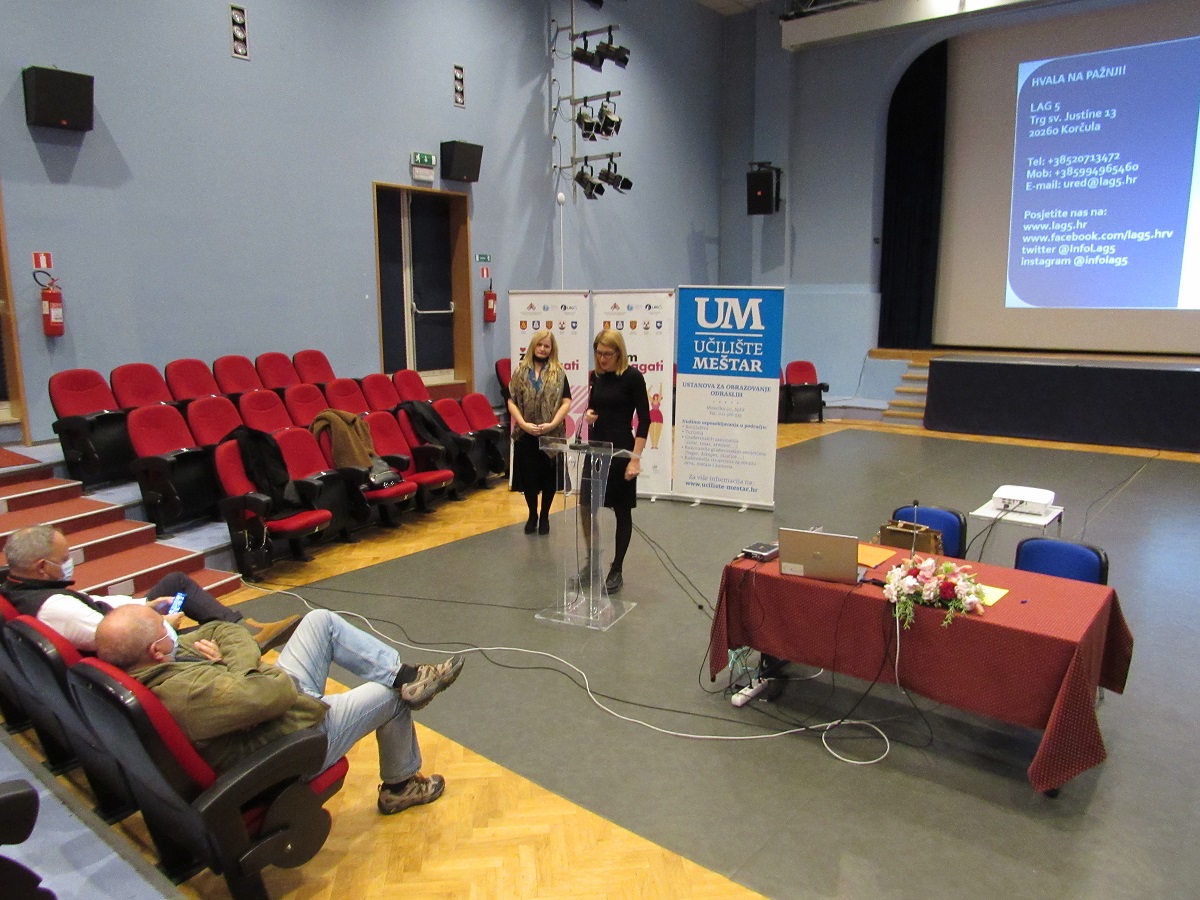 Na konferenciji su o uspješno provedenim aktivnostima i rezultatima projekta „Želim pomagati“ govorile voditeljica projekta i LAG-a 5 Katarina Slejko, te predstavnica Centra za socijalnu skrb u Korčuli Gorana Depolo.