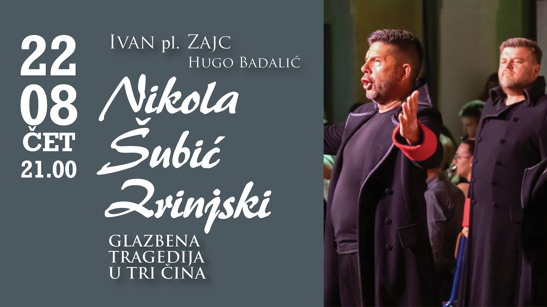 - 22.08. Ivan pl. Zajc / Darijan Ivezić: Nikola Šubić Zrinski, tragedija u tri čina. Redateljica: Ljiljana Gvozdenović, dirigent: Josip degl’ Ivellio