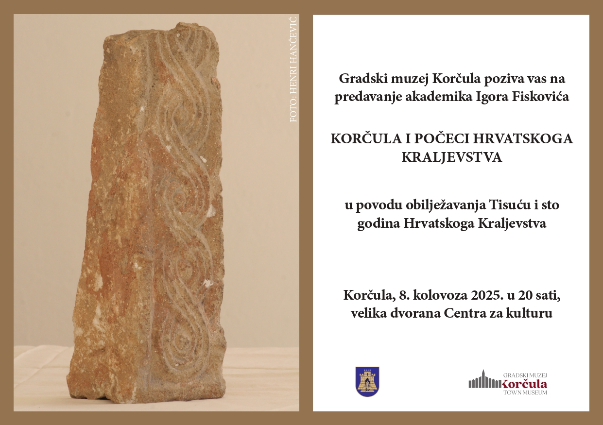 Gradski muzej Korčula poziva vas na predavanje akademika Igora Fiskovića, 8. kolovoza 2025. u 20 sati, velika dvorana Centra za kulturu Korčula.