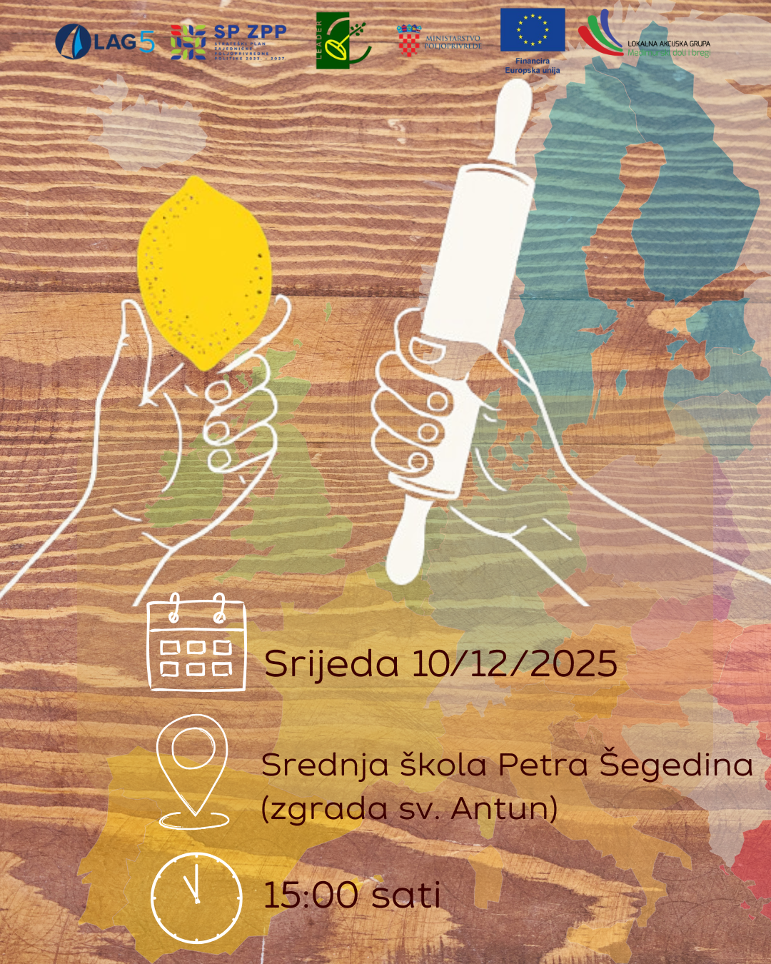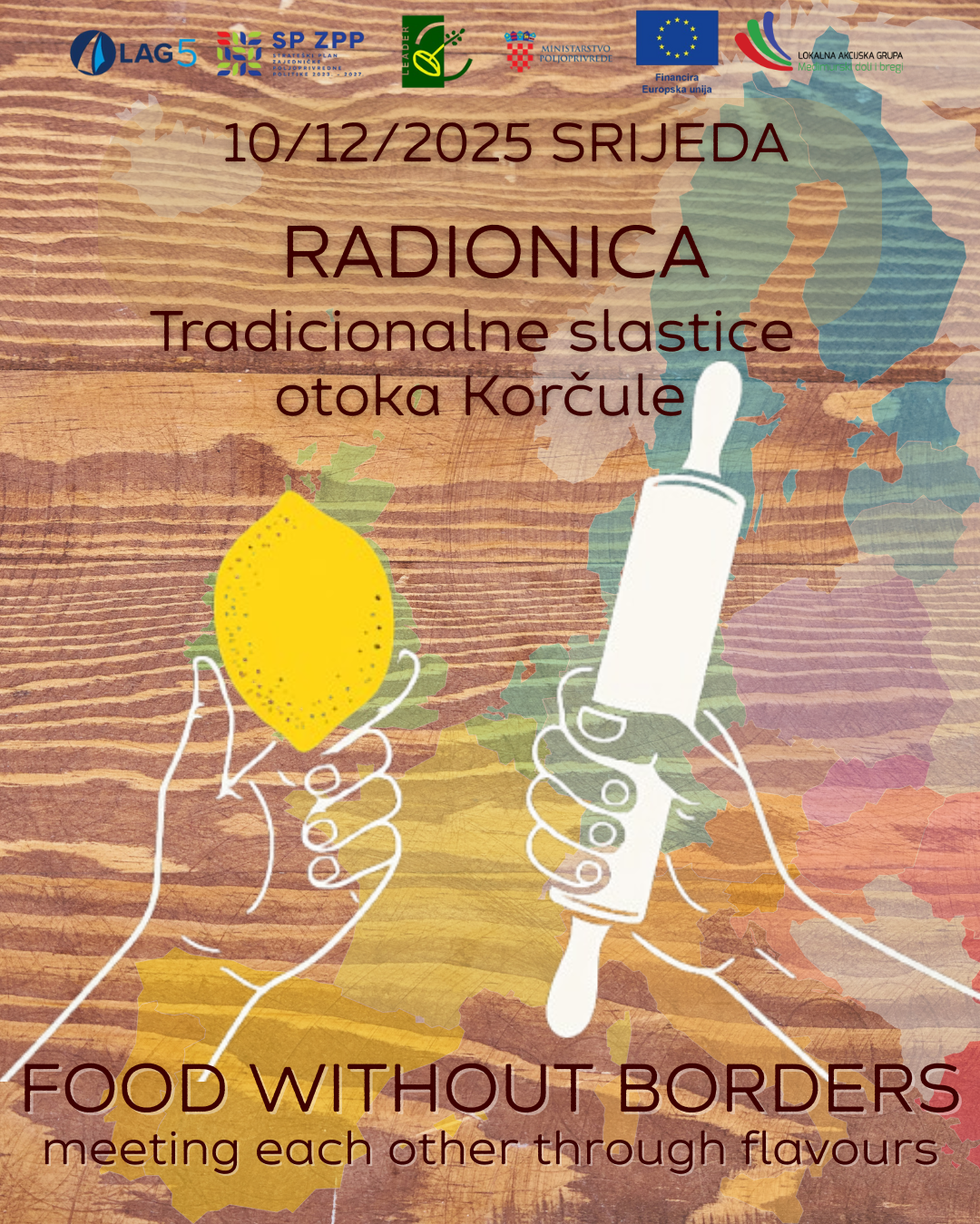 Lokalna akcijska grupa LAG 5 organizira radionicu pripreme tradicionalnih slastica otoka Korčule. Radionica će se održati u srijedu, 10. prosinca 2025. godine, u Ugostiteljskom praktikumu Srednje škole Petra Šegedina u Korčuli (zgrada Sv. Antun, Lumbarajska cesta 6, 20260 Korčula) s početkom u 15:00 sati.