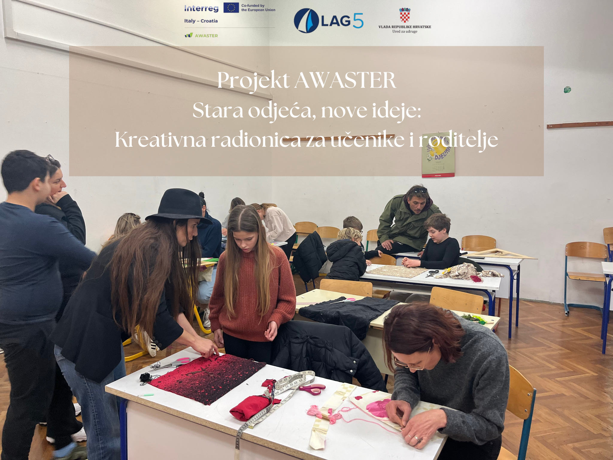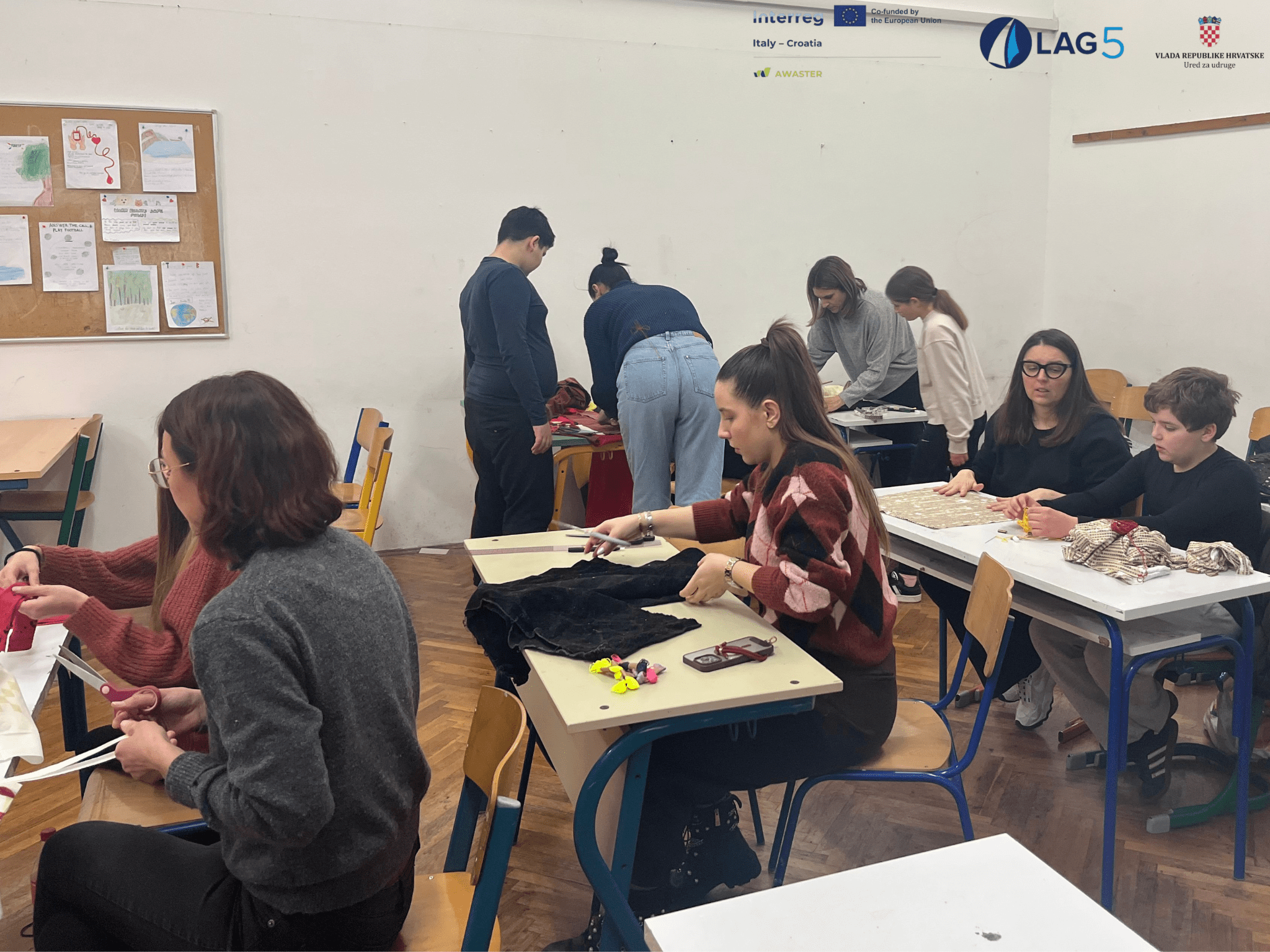 Kako bi mladi i njihovi roditelji stekli praktična znanja o recikliranju i kružnom gospodarstvu, Lokalna akcijska grupa LAG 5 je u sklopu projekta AWASTER (Adopting WASTE as Resource) u utorak, 17. veljače 2026. godine, održala edukativno-kreativnu radionicu ponovne uporabe tekstila u suradnji s Osnovnom školom Petra Kanavelića u Korčuli.