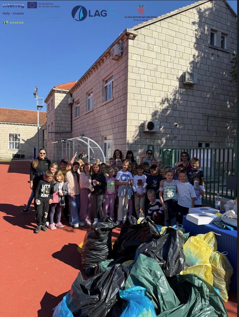 Lokalna akcijska grupa LAG 5, u suradnji s Osnovnom školom Ante Curać Pinjac, provela je akciju čišćenja okoliša škole u sklopu projekta AWASTER iz programa prekogranične suradnje Interreg Italija – Hrvatska 2021.–2027. U akciji su sudjelovali učenici od prvog do četvrtog razreda, njih gotovo 40, uz podršku svojih učiteljica. Aktivnost se odvijala na području oko školskog igrališta i iza same škole. Stručne suradnice LAG-a 5 najprije su učenicima predstavile važnost ovakvih akcija te ih podsjetile na prethodnu radionicu održanu u svibnju, kada su kroz igru i zabavne aktivnosti učili o vrstama otpada i pravilnom načinu razvrstavanja.