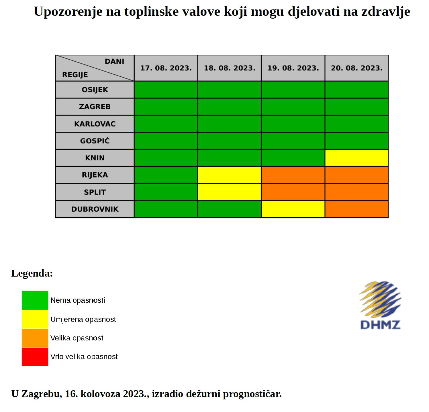 Upozorenje hidrometeorološkog zavoda na opasnost od toplinskog vala