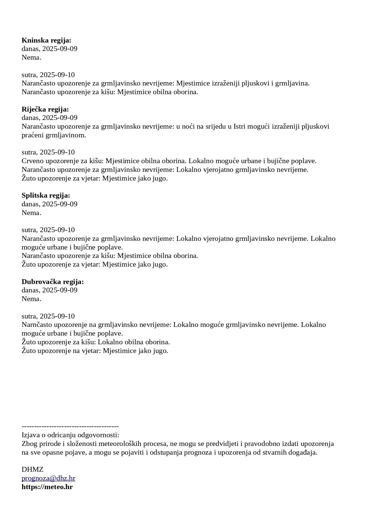 Dubrovačka regija: danas, 2025-09-09