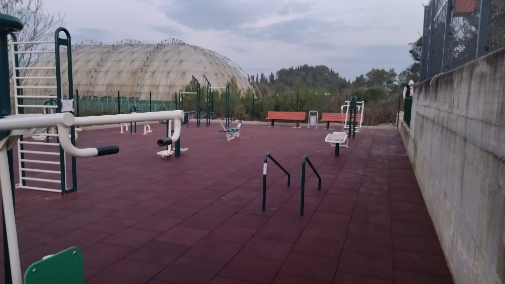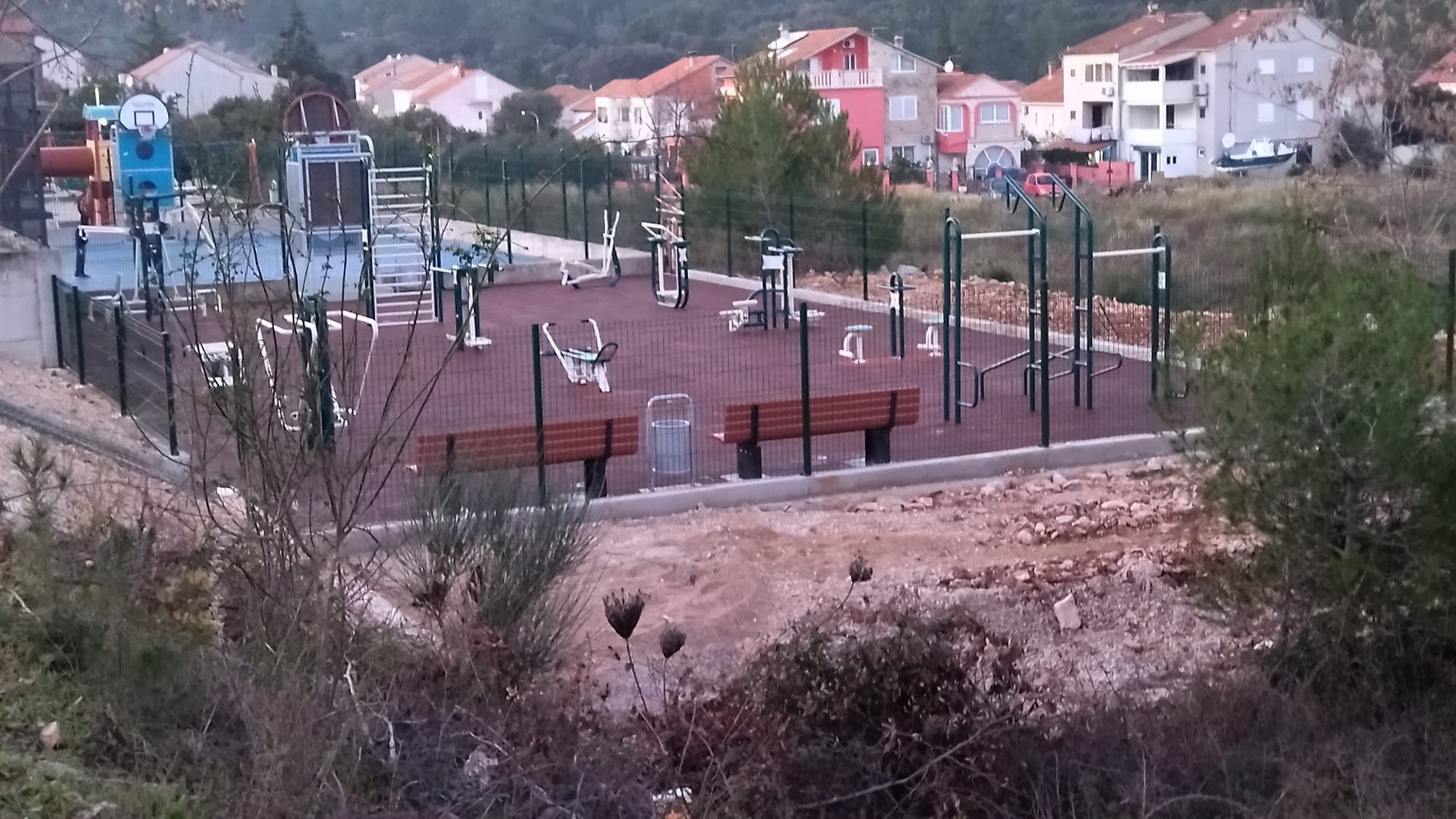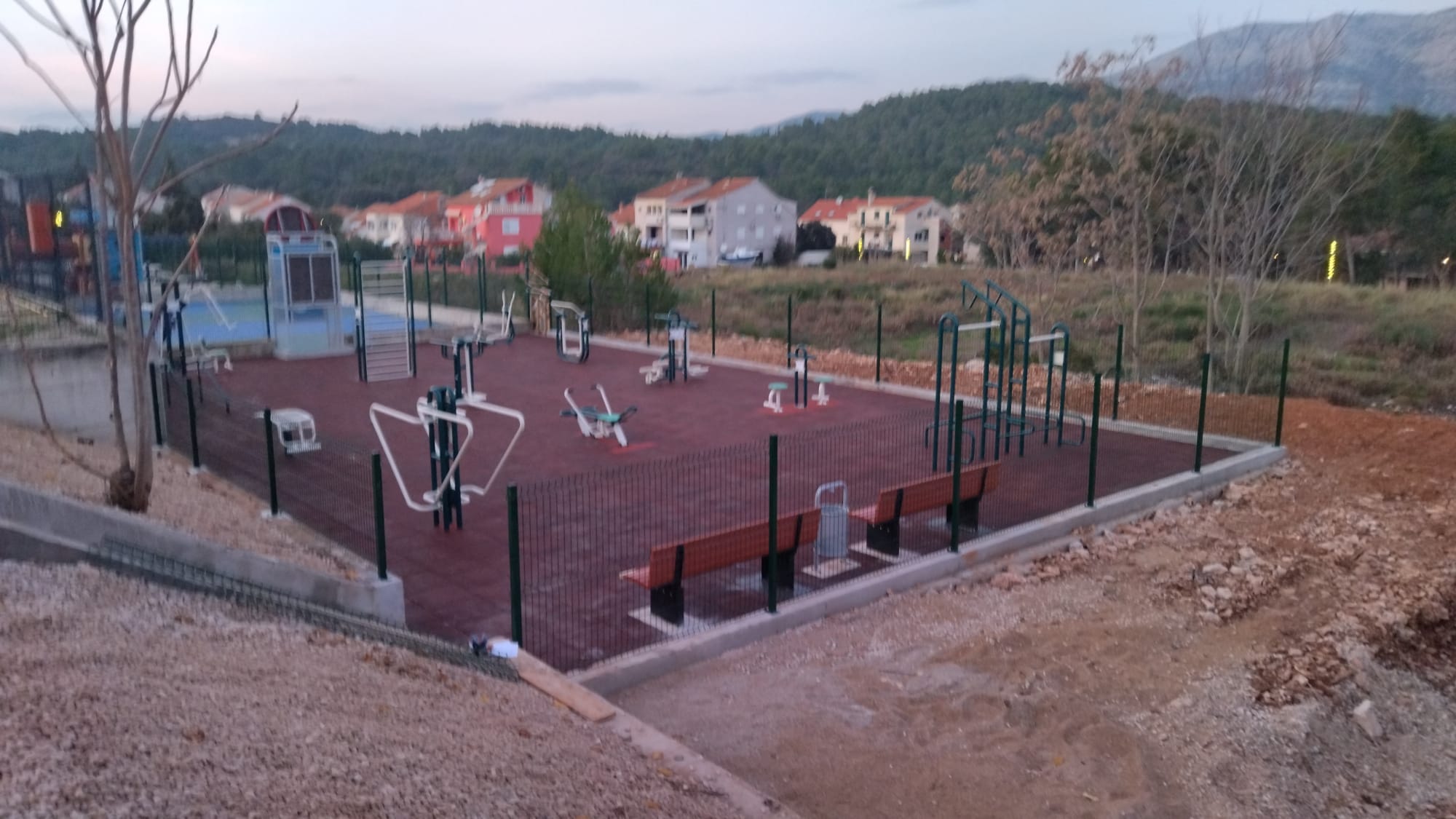 Površina uređenog vježbališta iznosi 250 m2, a opremljeno je sa 12 sprava za vježbanje, klupama, koševima za smeće i antistres podlogom.